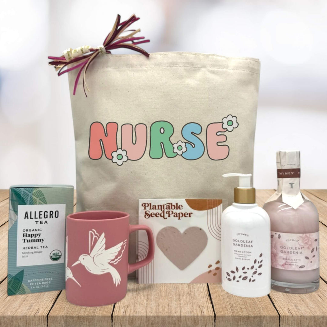 Show your heartfelt appreciation with this beautiful gift tote made just for the incredible nurse in your life. Presented in a charming tote adorned with the word “NURSE” surrounded by delicate floral accents, this gift is both thoughtful and uplifting—just like the person receiving it.