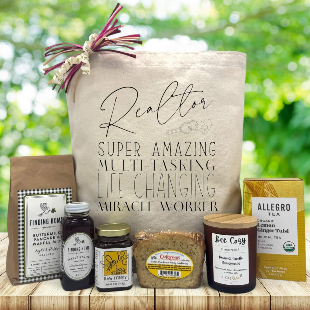 For the super amazing, multitasking, life-changing miracle worker — also known as your realtor — this gift basket says thank you in the most delicious and heartfelt way. Housed in a reusable tote boldly printed with those well-earned words, this collection is crafted for the one who juggled contracts, showings, and closings like a total pro.