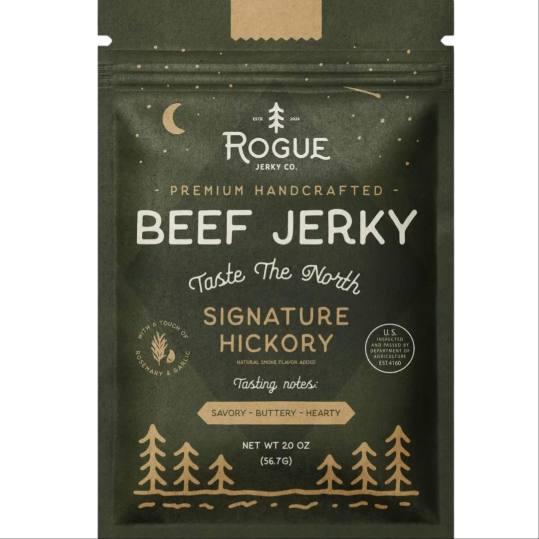 The cornerstone of Rogue Jerky, blending smoky hickory with sea salt, garlic, and onion, enhanced with a daring rosemary twist. It’s our spin on the classics, transformed and elevated, Rogue style—bold, with an artisan’s touch. Discover the bold flavors of the North with Rogue Jerky Co.'s Signature Hickory Beef Jerky.
